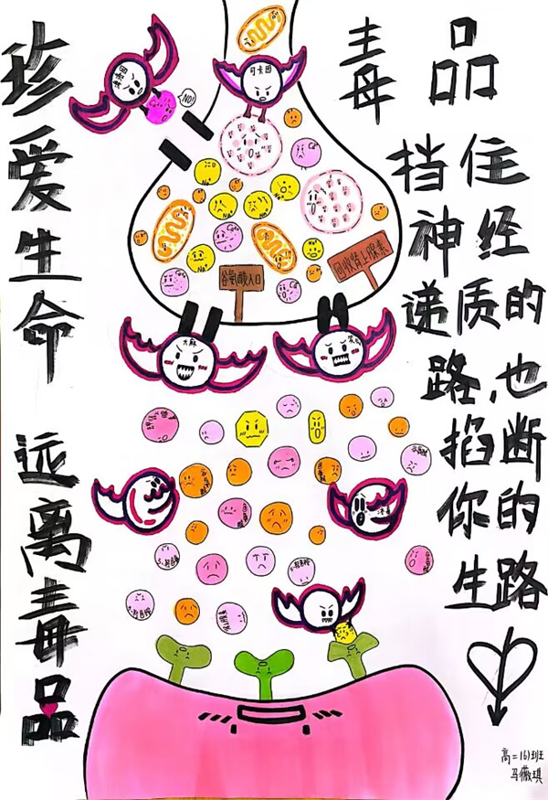 为提升学生学习兴趣,培养学生实践能力,提高学生科学素养,依托校科技节的召开,结合课程要求,高二生物组特举行“禁毒宣传海报设计”评比活动,致力于让学生对毒品对人体神经调节和体液调节的影响拥有更加深刻的认识和理解,充分发挥个性特点,体验海报设计的过程。