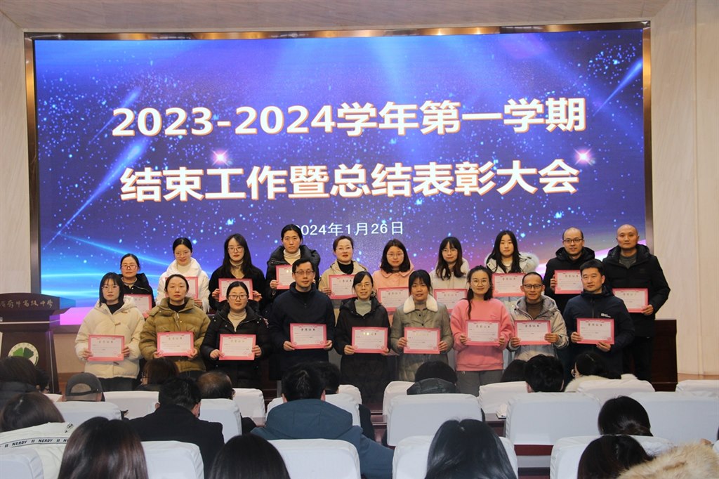 岁聿云暮,敬颂冬绥;回眸聚力,昂首前行。充实而忙碌的一学期又在紧张有序的工作中接近了尾声,为了总结收获、赋能前行,江苏省奔牛高级中学于1月26日下午在树人楼四楼会议室隆重举行了学期结束工作会议,会议由副校长姚冬青主持。