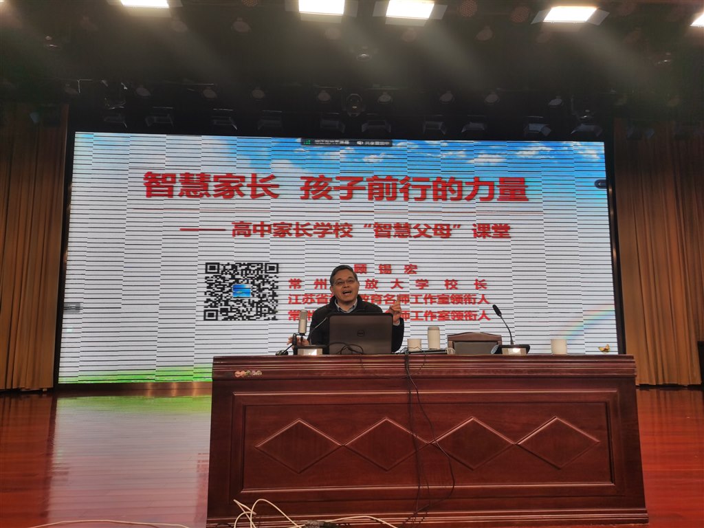 第一阶段,学校邀请常州开放大学党委书记、校长,常州市家庭教育研究院专家委员会副主任,江苏省社会教育名师工作室领衔人顾锡宏教授为家长做了主题为《智慧家长,孩子前行的力量》的讲座。顾教授用通俗易懂的语言、幽默风趣的谈吐、深入浅出的道理阐释了家庭教育的重要意义。他认为家长是孩子的第一任教师,家长的言行深刻影响孩子的成长成才,家庭教育的重要内容就是要培养孩子正确的“三观”、强健的体魄、良好的性格、坦然的心态,这些也是一个孩子完整人格的必备要素。他还阐述了家校协作的重要性,家校共育就是要尊重老师、保持信任、主动参与、积极配合、保持理性、达成共识。最后他强调要增进亲子沟通,改善亲子关系,建立温馨和谐的家庭氛围,优秀的家长就需要学会鼓励、尊重、陪伴、示范、等待。顾教授的讲座引发了在场家长的共鸣,获得了家长的赞同,赢得了家长的掌声。