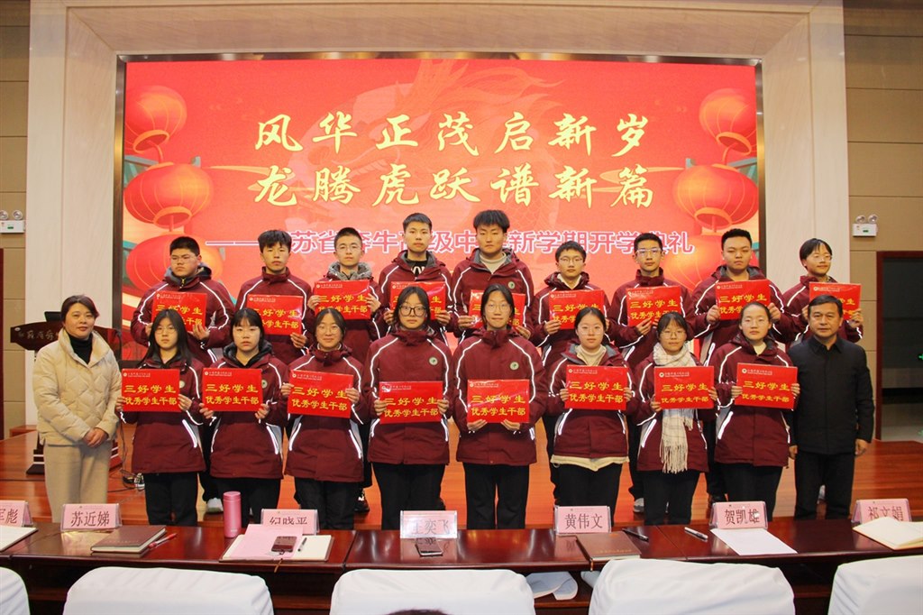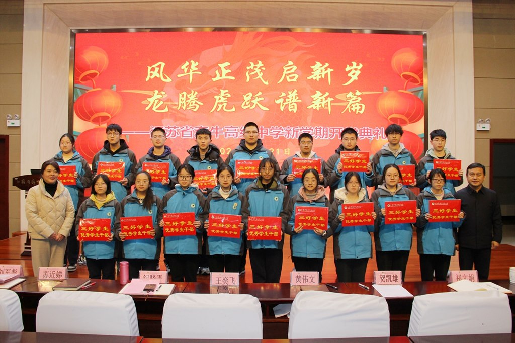 龙腾万里启新程,乘风而上筑未来。乍暖还寒之时,草木勃发之际,我们在校园中重逢,迎来新的学期。2月21日下午,江苏省奔牛高级中学在树人楼四楼报告厅隆重举行2023-2024学年第二学期开学典礼,共迎新起点,携手新征程。本次活动由副校长姚冬青主持,在线上线下同时举行。