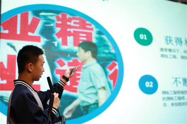 “我的职业理想”是同学们在高一“我的大学梦”基础上进一步规划未来之路的结果。从同学们的展示情况来看,理想职业丰富多彩,如空中交通管制员、国防科研工作者、中医、外科医生、生物制药师、测绘工程师、服装设计师、律师、主持人、自媒体博主、英语导游、老师、军人等等。通过一份份详实精美的课件,可见同学们对自己未来的就业方向和路径有了理性深入的思考;通过一位位参赛者自信大方的演讲,可见同学们对未来之路的坚定和信心。
