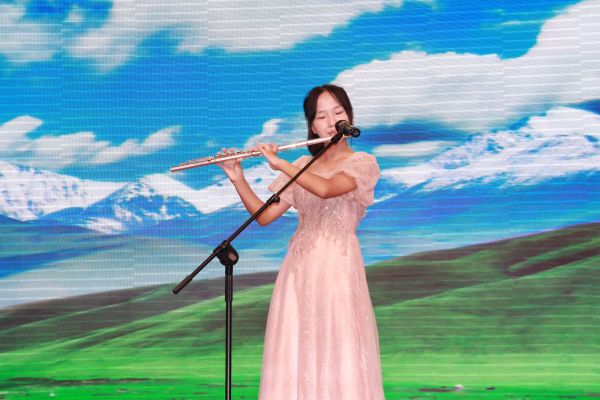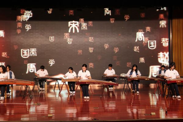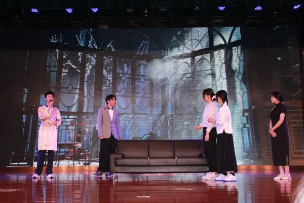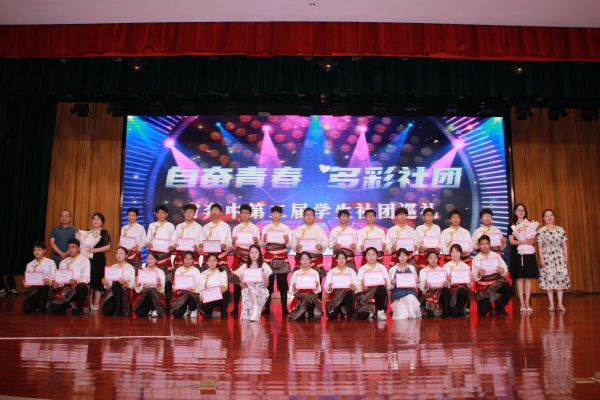 中场期间,课程教学处主任刘军彪和学生发展处主任沈国英为刚刚获得常州市中小学艺术展演特等奖的岗拉梅朵艺术团颁发了奖状,并播放了学校社团精彩剪影以及魔方社、春秋历史社和广播社带来的短视频、配音秀。