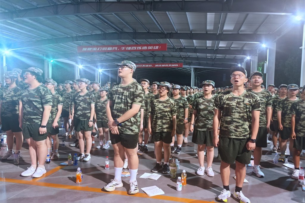 同学们在经历了一整天的训练后,脸上虽然挂满了汗水,但他们的笑容却比这灯光还要绚烂。这汗水,是他们努力的见证;这笑容,是他们对自己成长的肯定。在被照亮的训练场上,学生们面向着舞台席地而坐,能歌的同学大胆上台开麦,带动现场的氛围推向一个又一个高潮。教官也带领大家齐唱强军战歌等军旅之歌,让吃苦耐劳的品格与坚硬的意志在同学们心的田野生根发芽,那温馨与和谐的画面成为了军训第一天最难忘的风景。
