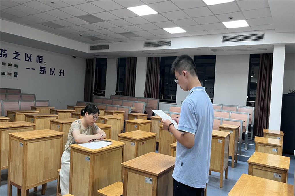笔试结束后,选手们分四组依次进入二楼和三楼的面试室,回答教练提出的相关问题。要求思考一分钟,回答两分钟,在有限的时间里,选手们旁征博引,妙语连珠,展现出各自良好的语言表达能力与高超的思维水平。他们或慷慨激昂,或娓娓道来,分析问题鞭辟入里,面对教练的追问对答如流,既体现出自身优秀的综合素养,也充分展现了省奔中学生的蓬勃朝气。