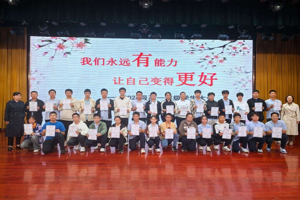 当有凌云志,不负少年时。大会第一项议程是进行阶段表彰。沈国英主任宣读了高一上学期第一次阶段考试中五门学科的“单科之星”,教师发展处副主任张瑞宣读了阶段考试中“金桂叶”奖章获得者名单,并为同学们颁发奖品及合影留念。通过表彰,树立榜样,进一步激发了同学们学习的热情。