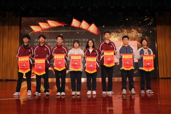 第二阶段为期中表彰活动。首先,课程教学处主任刘军彪宣读了星级宿舍、文/理科总分学霸、各单科实力之星的表彰决定。随后,高二年级管理小组为获奖同学颁奖并合影留念。颁奖活动后,校长助理、高二年级管理小组组长周伯明给全体高二年级学生作了题为《奋斗的青春最美丽》的讲话。周校长提出,我们要对自己有足够的自信,因为我们确实是优秀的;我们要对自己有目标要求,因为目标引领着我们一步一步向前迈进。周校长还引经据典,以曾经的优秀学子为榜样示例,鼓励同学们要变“他律”为“自律”,从小事做起,从常规的点滴要求做起。