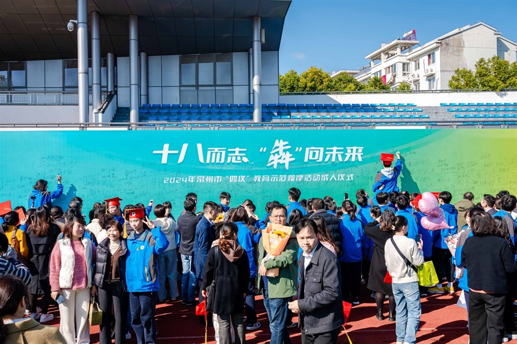深秋迟暮,新冬可期。11月23日上午,2024年常州市“四仪”教育示范观摩活动“十八而志 ‘犇’向未来——江苏省奔牛高级中学2025届高三年级成人仪式”在省奔中操场上隆重举行,2025届高三全体班主任、学生及其家长共同参加了此次活动,常州市文明办、市教育局、团市委、市妇联、市关工委,各辖市(区)文明办、教育局,常州经开区党群工作部、社会事业局领导,以及新北区有关部门、奔牛镇相关领导莅临观摩指导。