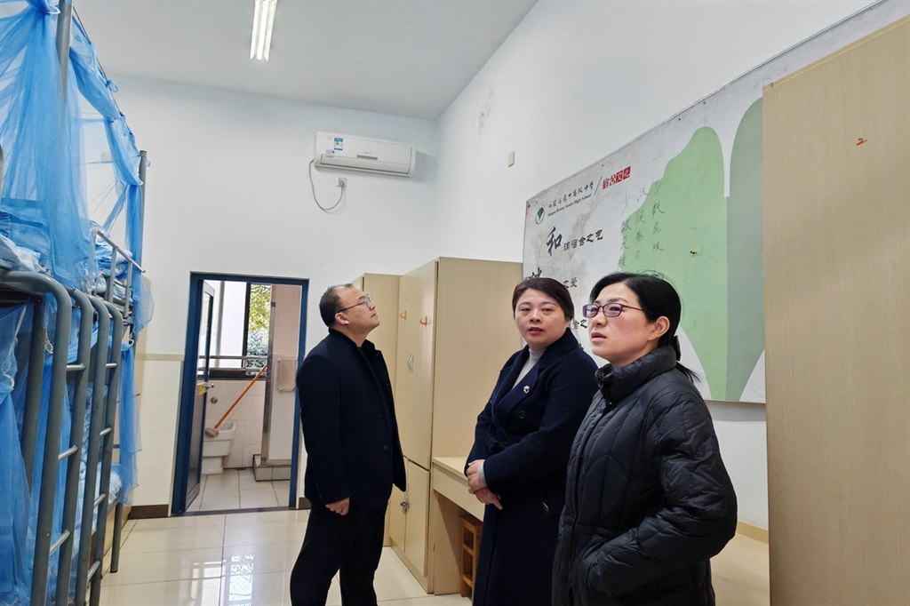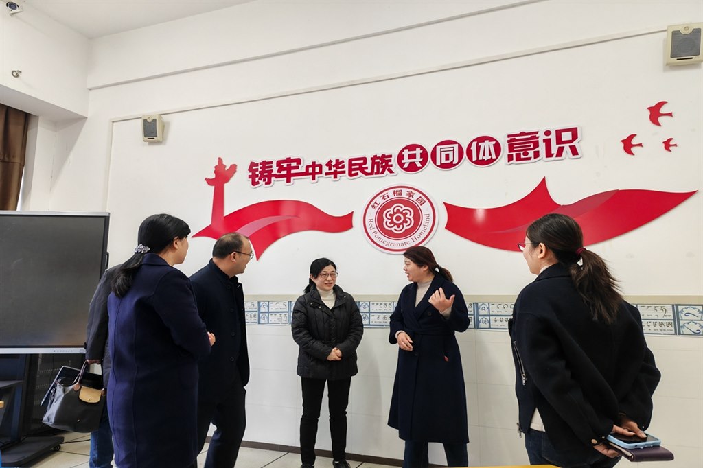 姚部长一行参观了红石榴家园,走访了教室、图书馆、宿舍等,细致了解我校民族班学生的学习、生活情况。纪晓平校长汇报了我校铸牢中华民族共同体意识相关工作的开展情况。她介绍到我校自2002年承担西藏高中生内地插班就读项目后,又于2023年开设青海班,开启了民族教育的新征程,二十多年来,学校积极探索民族融情教育的有效路径,紧紧围绕铸牢中华民族共同体意识主线,弘扬“树人文化”,厚植家国情怀,完善体制机制,让“融情教育”有故事、有温度,有成效。姚部长对我校在开展铸牢中华民族共同体意识教育和民族团结进步教育方面取得的成绩给予了肯定,同时也提出了宝贵的意见建议,希望我校继续探索民族融情教育的有效路径,积极构建全员育人、全过程育人、全方位育人的思想政治教育格局,为祖国培养民族团结的力量。