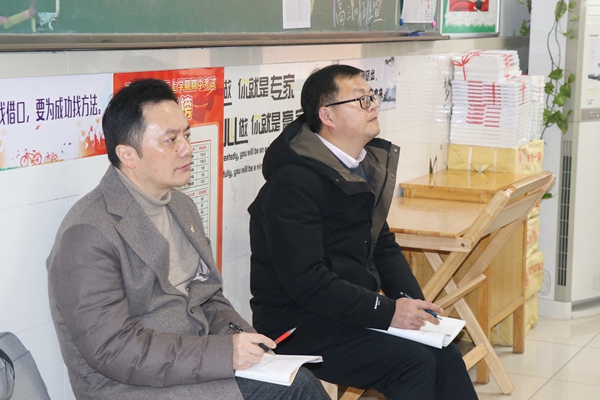 活动当日,为提高新高考备考的质量和实效性,学习先进的教学理念,搭建学习、交流、借鉴平台,为2025年新高考备考工作做好充分准备,紫阳中学党委书记、考察学习团团长王继、紫阳中学校长冯小强、 副校长杨长青携高三年级管理团队和各学科备课组长来校,深入我校高三年级课堂,随堂观摩了多节高三复习课。课堂上老师们精妙的教学设计、精致的课堂管理和高超的教学艺术给听课老师们留下了深刻的印象。紫阳中学老师们纷纷表示课堂上的教考结合意识,巩固操练过程和校本作业设计等环节凝聚了省奔中“四有”好教师团队深耕教研,扎实教学,追求卓越的教学品质。