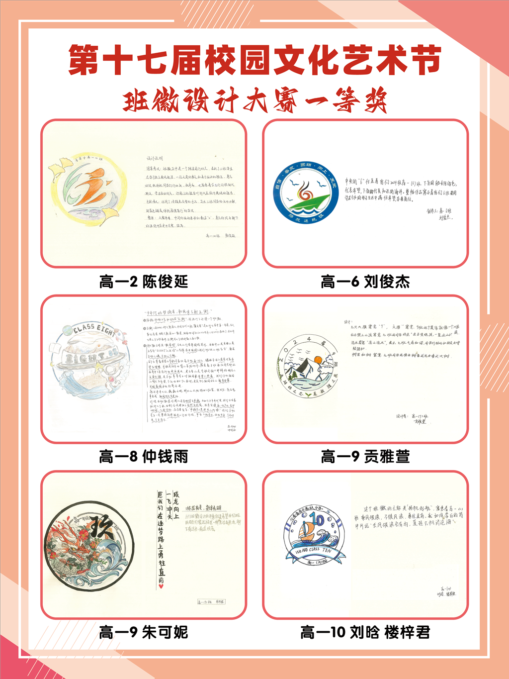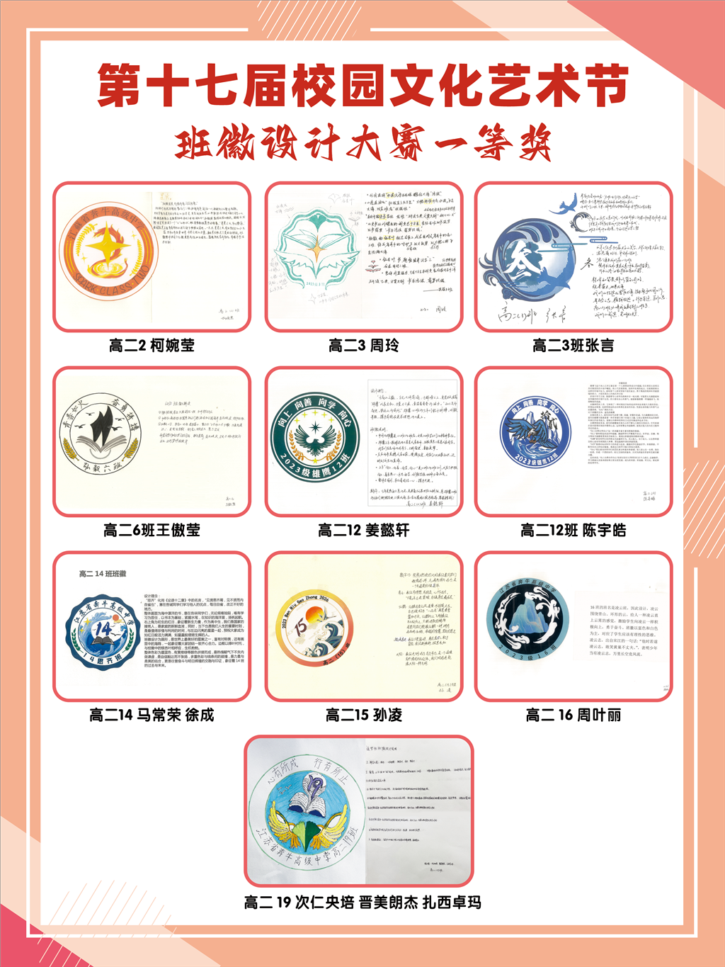 一年一度省奔中科学创新节,我校高一、高二年级举行了班徽设计评比活动。各班同学积极参与,从讨论、设计、敲定到最后制作,整个过程凝聚着全班同学智慧才华。班徽作品是班级文化的结晶,希望同学们在这个活动中能增强班级归属感和集体荣誉感,激发他们关爱同学,关心班级,热爱学校的深厚情感。