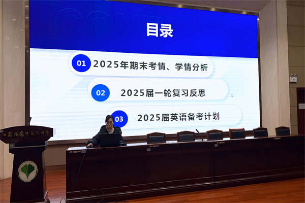 最后,纪校长对2025届高三进行工作指导。纪校长从“坚定备考信心”“坚持深度研究”和“坚决攻坚克难”三个角度来分析期末考试取得的成绩,鼓励教师激发学生的潜能,提升自身的教学研究能力,对学生和自身要有信心,努力奋发,坚信“相信”的力量。同时指出教师要在保持整体提升的基础上关注优秀学生的培养和目标生的转化;要保持时时放心不下的责任感和如履薄冰的危机感,做好规划,走好高三下一阶段教学工作的每一步。