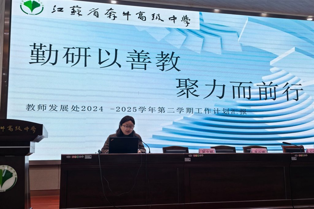 干字当头,奋发有为。会议第二项议程为各科室主任分别介绍新学期的工作要点。副校长祁文娟代表党政办公室以《建引领促发展,统筹协调抓落实》为题,介绍了办公室的上学期工作和新学期的重点工作,表示将以党建活动筑基固本,以常规服务高效运行,以精心宣传提升形象,以五年规划统整工作,确保各项工作有序扎实开展;课程教学处主任刘军彪以《坚守课程与教学阵地,夺取今天与明天胜利》为题,从坚持课程为要和坚持教学为先两个方面进行了具体工作部署,以此构建高效能体系,打造高水平课堂;学生发展处主任沈国英以《润德于心,养正于行,深耕自主德育课程》为题,从狠抓学风建设、做好区德育专题汇报工作、打造自主德育思政课程、推进心理健康课程序列化等四个方面对自主德育课程具体建设内容和工作要点进行了详细解读;教师发展处副主任张薇以《勤研以善教,聚力而前行》为题,立足新学期工作主要任务,从深化教师培养、构建“金字塔”型人才结构、教科研赋能三个方面进行了全面深入的思考与规划。