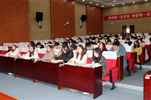 最后,青年教师代表戴文发言。戴老师分别用追问、扎根与传承三个关键词分享了她从教近两年来的思考与感悟,指出在青年教师追寻教育理想的旅途中,优秀的前辈能够带来催人奋进、促人成长的巨大力量,在集体的光热中方能稳步成长,进而将希望与智慧的火种不断传递。愿每一位青年教师心怀热忱,在教书育人的长卷上,共写一段草木蔓发、春山可望的诗篇。