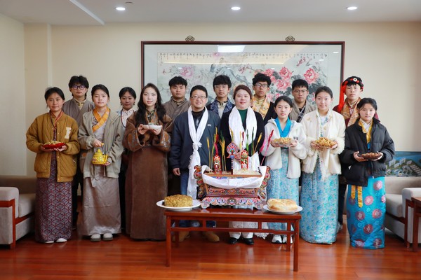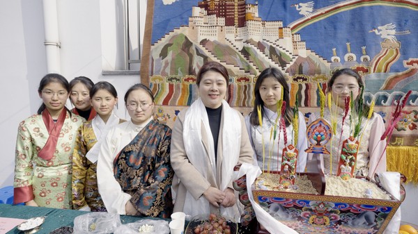 2025年藏历木蛇新年庆祝活动在27日下午的藏文化宣传、展示活动中拉开了序幕。经过民族教育处、民族班师生的精心准备,藏文化展示内容丰富、形式多样,有藏式书法签名、藏式食品品尝、藏装展示试穿、藏族歌舞表演、藏式物品展示、藏族传统游戏、切玛现场讲解、古突现场制作等,让全校师生更深入了解到藏族的文化习俗,感觉到藏族文化的丰富多彩。