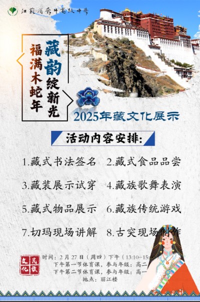 雪域春风拂江南,自奋蹄旁发榴蕊。藏历新年是藏族同胞最欢乐的节日,也是内地藏族学子最温暖的乡情。在2025年藏历木蛇新年之际,省奔中在2月27日下午至28日,隆重举行了庆祝藏历木蛇新年的系列活动。新北区委宣传统战部副部长、民族宗教事务局局长姚洁,新北区教育局副局长张向坤,奔牛镇人大主席王祥成,奔牛镇党委副书记李凯,奔牛镇宣传统战委员须倩怡等区、镇领导,以及省奔中校领导、各民族班的班主任、生活老师等参加了庆祝活动。