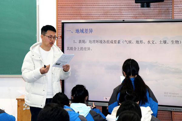 地理研讨活动上,我校的王秋杰老师和省丹中的胡金长老师以《自然地理环境的差异性》为题进行同课异构,探究高三地理二轮复习的备考策略。王老师的课以“苔原带”为主题,一境到底,设计精巧,引导学生探究极地苔原带、长白山高山苔原带的形成条件,锻炼了学生提取信息、综合思考的能力。胡老师的课以近年来的高考热点为导入,先帮助学生详细地梳理了地域差异、水平地域分异规律、垂直地域分异和地方性分异的基础知识,再以高考真题的延伸提升了学生的解题能力。