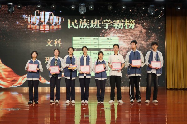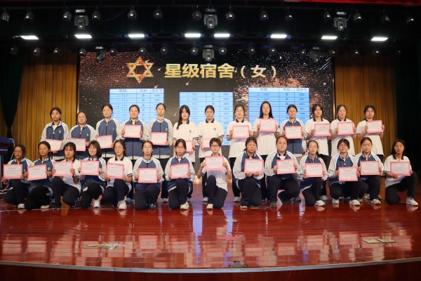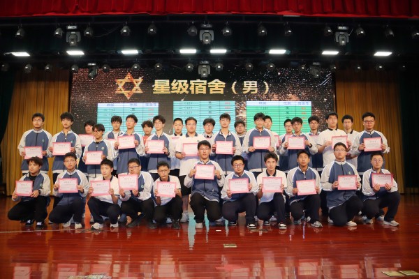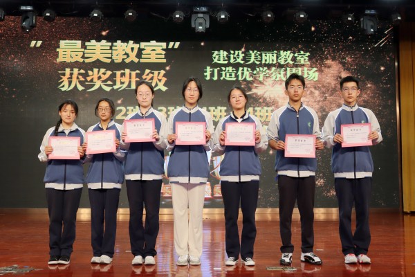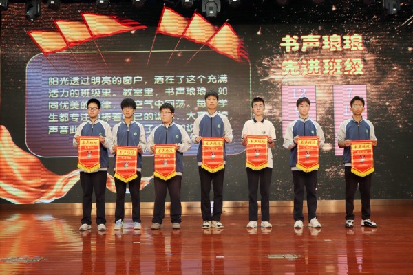 大会分为宣读表彰决定、颁发奖状奖品、分管校长讲话三个流程。首先,课程教学处主任刘军彪宣读了《关于表彰优秀班集体和学生的决定》,从期中考试总分、单科、早读、宿舍、教室等多方面进行了表彰,共评选出40余名“卓越奖”获得者、7个“书声琅琅先进班级”,同时评选出若干“星级宿舍”和6个“最美教室”。随后,高二年级管理小组成员为获奖个人和集体颁发了奖状。