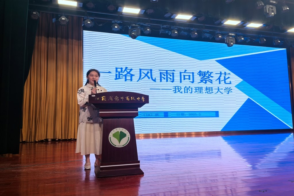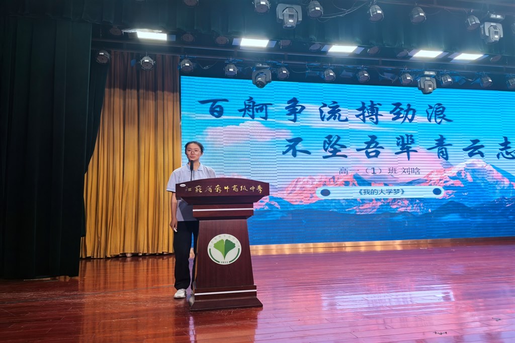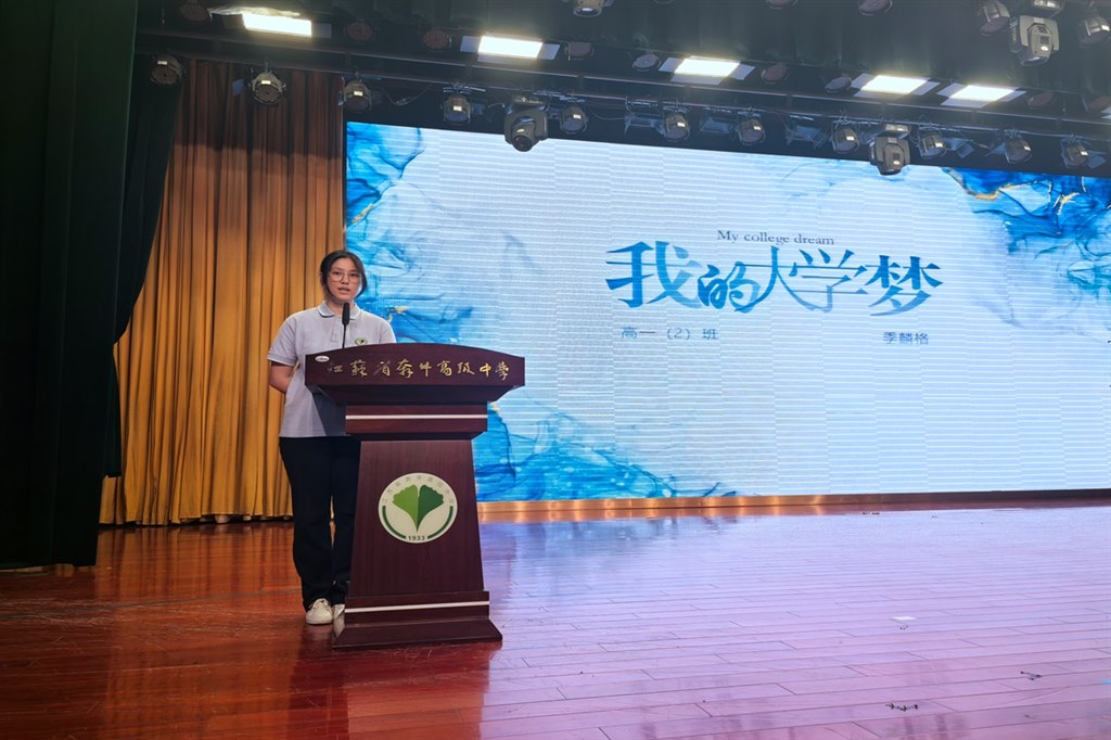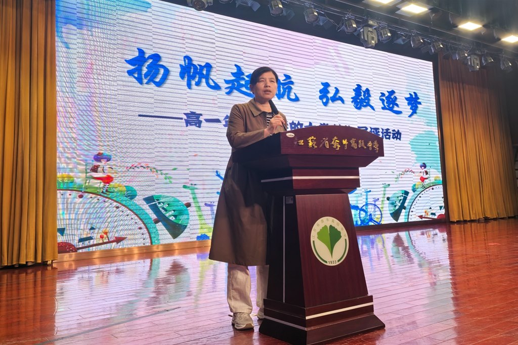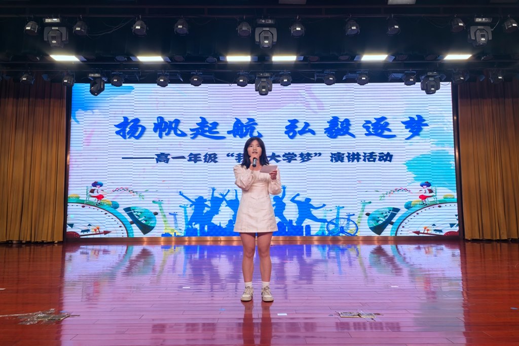 以青春之名对话未来,以梦想之火点亮征程。为引导高一年级学生树立远大理想,科学规划学业生涯,5月11日晚,我校高一年级于丽江楼举办了“扬帆起航 弘毅逐梦——我的大学梦”展评活动。本次活动分为“弘毅讲堂”专题讲座与“我的大学梦”演讲比赛两大板块,分别由学生发展处主任沈国英和高一(15)班陈怡君担任主持人,通过榜样引领与自我展示相结合的方式,为全体高一学子带来一场思想与梦想的盛宴。