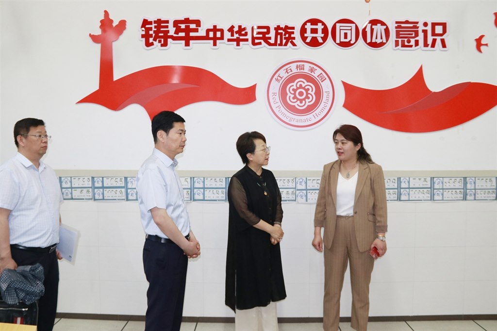 调研组一行实地考察了学校民族班教学与生活场所,走进教学楼,深入了解课程设置与课堂教学情况;参观食堂和民族班宿舍,关切学生日常生活保障;驻足“红石榴家园”,感受学校在促进各民族学生交往交流交融方面的特色实践;步入校史陈列馆,了解学校在民族教育领域的发展历程与文化积淀,调研组一行对学校将民族教育融入校园环境、办学历史的创新举措给予了高度评价。