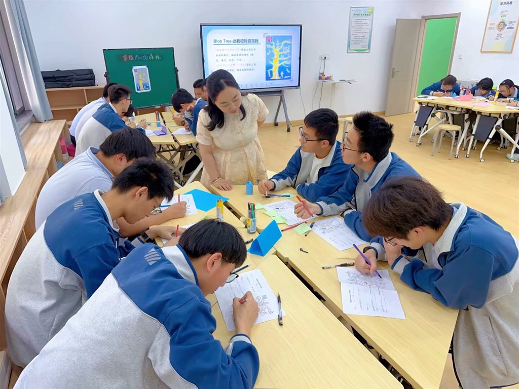 活动伊始,徐梦霞老师开展的高中生孤独感心理团辅成为一大亮点。此次团辅以 Blob Tree 为核心工具,将抽象的情绪可视化,为探索高中生孤独感提供了全新视角。团辅中,徐老师巧妙设计形态各异的Blob Tree任务,引导学生挑选“你认为最快乐的人”,并通过分享环节,将隐性的孤独感转化为具象化表达,有效降低了学生倾诉的心理门槛,激发了学生的深度自我暴露。团体带领者还通过追问 “这位人物的举止让你联想到什么”,自然地引导学生关联生活场景,推动情感共鸣,促进了成员间的相互理解与支持。