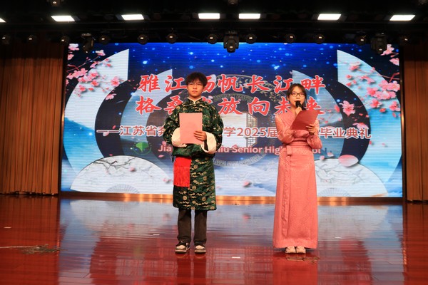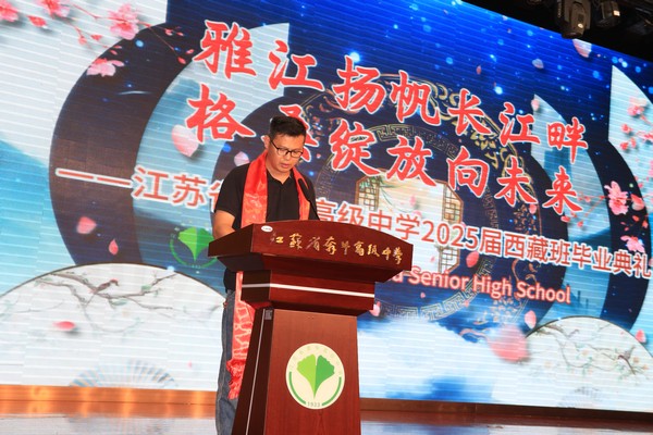 榴花灼灼映照青春征程,骊歌嘹亮激扬雪域豪情。6月10日上午,江苏省奔牛高级中学2025届西藏班毕业典礼在丽江楼隆重举行。新北区奔牛镇党委书记俞建君,新北区委宣传统战部副部长、区民族宗教事务局局长姚洁,新北区教育局副局长蒋辉,新北区台办主任李浩杰,奔牛镇人大主席王祥成等领导嘉宾应邀出席。省奔中党委书记、校长纪晓平携校领导班子成员,西藏班高三班主任、任课教师、生活老师及全体民族班学生齐聚一堂,共同见证2025届雪域学子人生中的重要时刻。本次活动的主持人为高一20班的常旭尧和高二20班的岗拉彬珍。