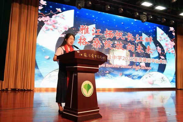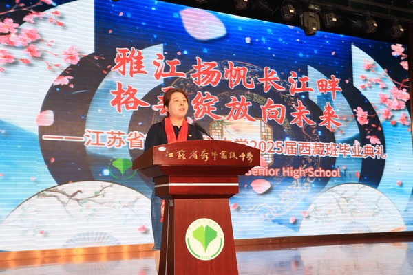 省奔中党委书记、校长纪晓平为毕业生代表送上毕业证书。在随后的致辞中,她将西藏班的同学们喻为“教育援藏政策精心培育的果实”“民族团结进步事业的希望火种”,希望他们将江南的灵秀与雪域的坚韧熔铸于心,把在省奔中锻造的品格与学识带回高原,化作建设新西藏的蓬勃力量!
