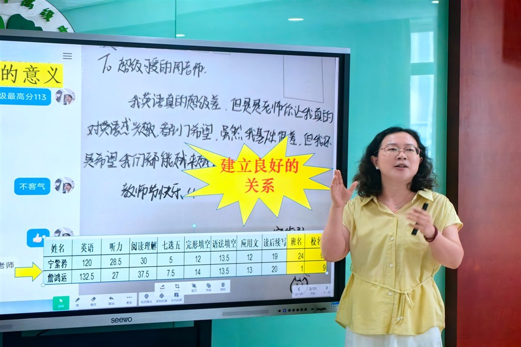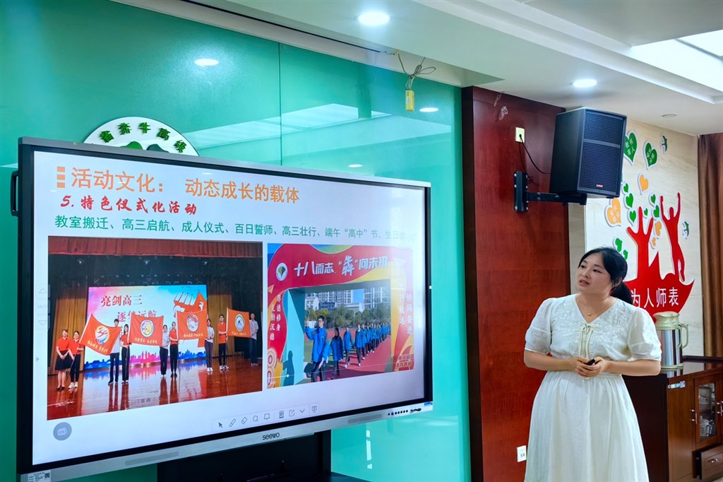 如何建设新班级、管理好班级?学校邀请了四位优秀班主任分享德育工作经验,满满的干货让在场教师收获颇丰。周鑫老师从精神文化、制度文化、环境文化、活动文化四个方面,详细分享了班级文化建设的经验;周宁老师以 “家校合作 促进双赢” 为题,结合自身带班经历,阐述了家校合作的意义及具体途径;赵邢翔老师围绕班级管理,提出了耐心打磨、真心打动、虚心学习三项有效方法;王法阳老师则针对问题学生处理,建议从 “5W1H” 视角分析学生违纪情况。