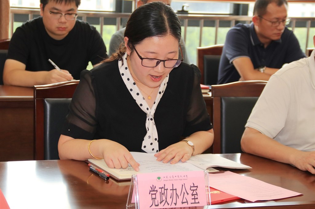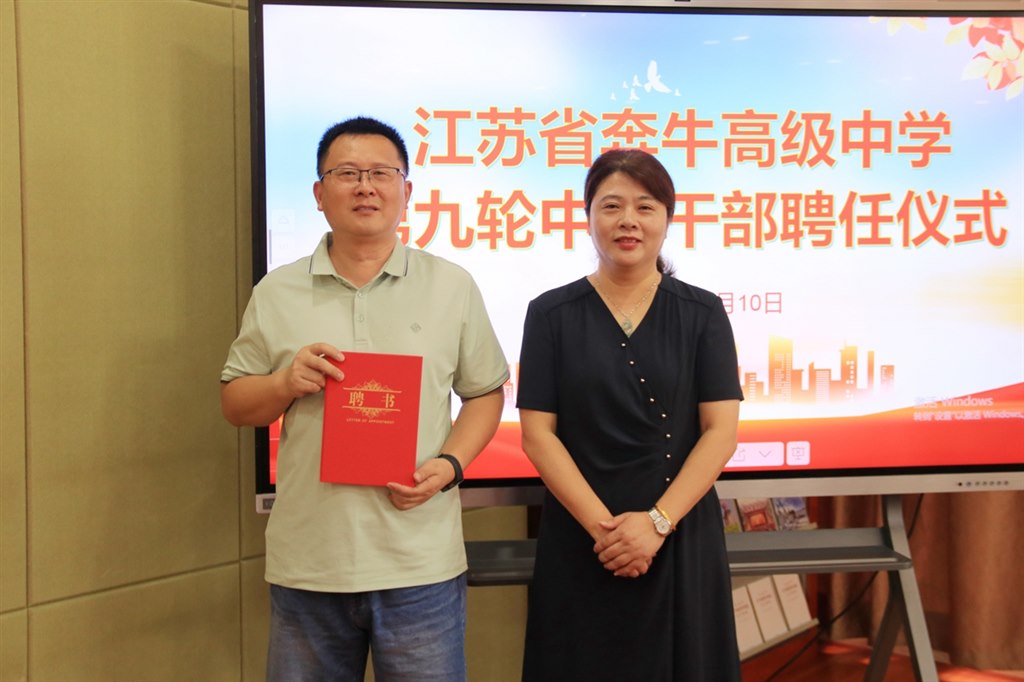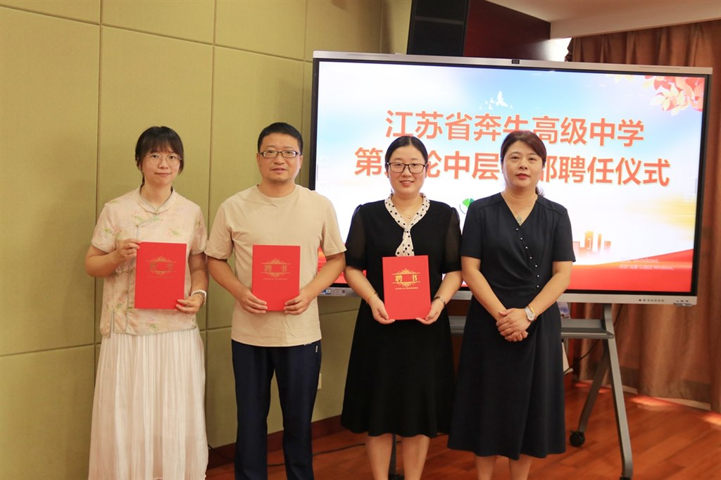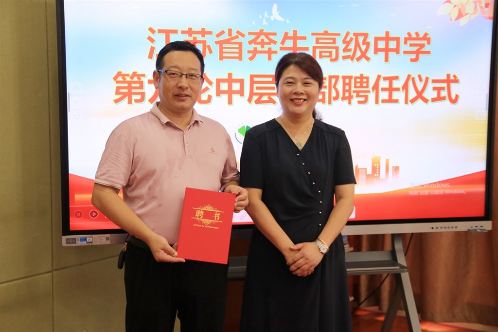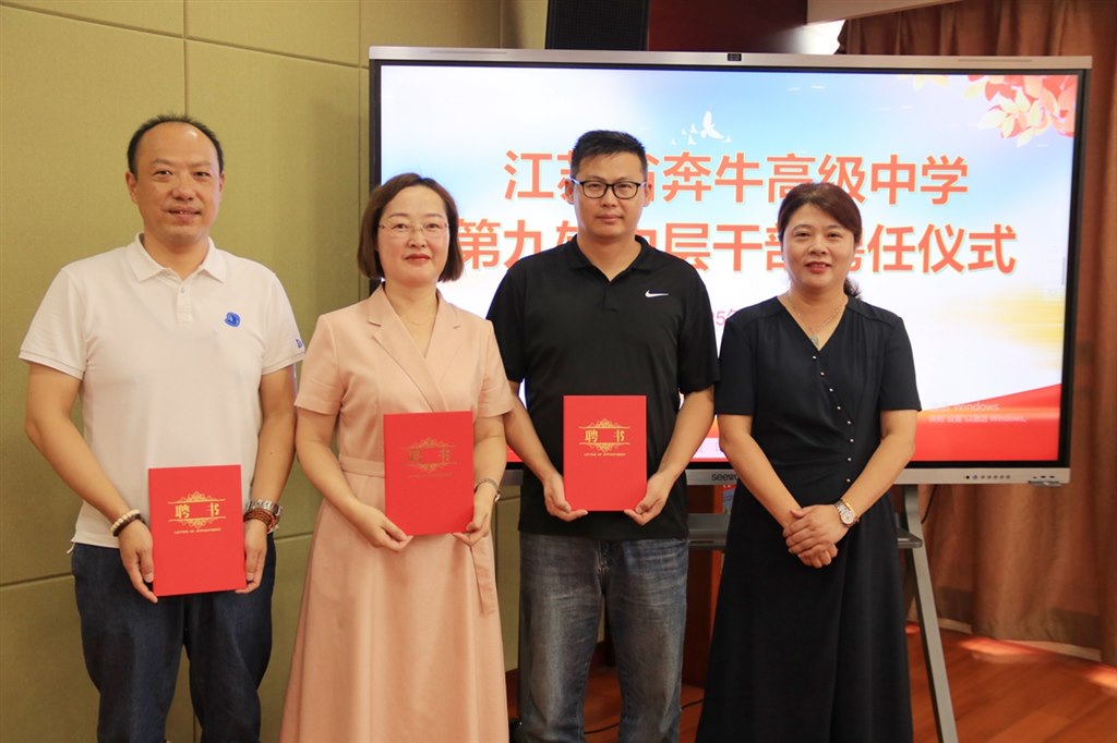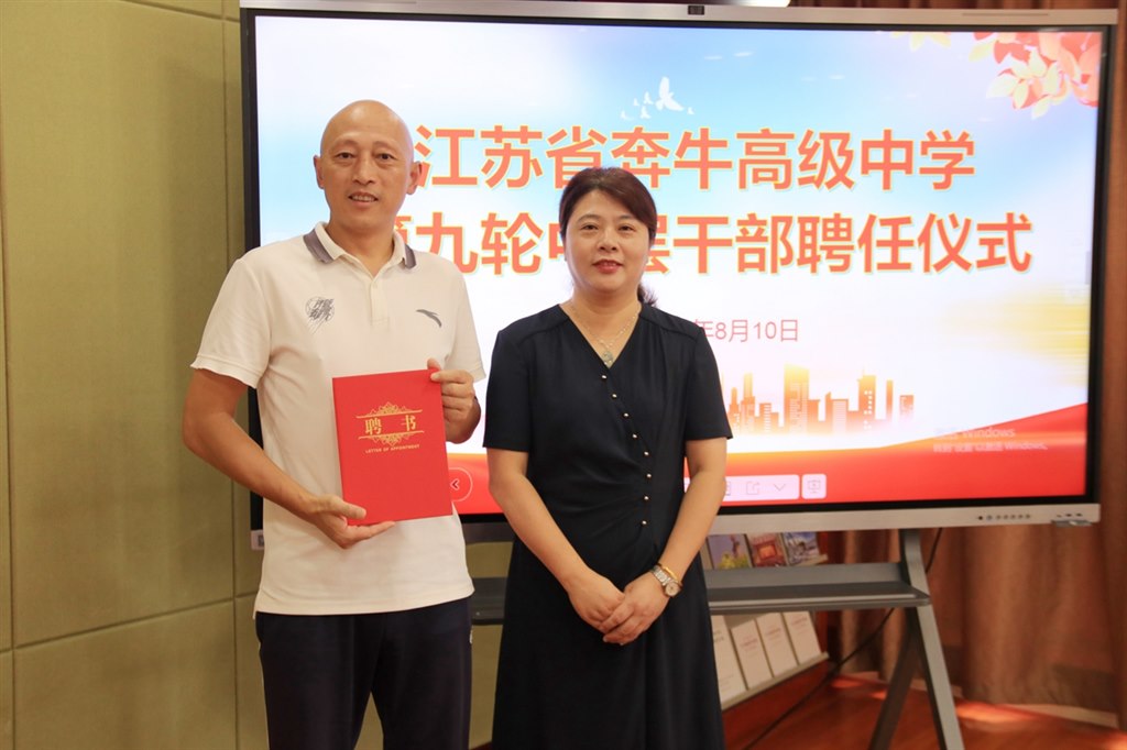 凝心聚力启新程,履职担当谱新篇。8月10日上午,江苏省奔牛高级中学第九轮中层干部聘任仪式在树人楼五楼会议室举行,省奔中全体校领导和第九轮中层干部参加了聘任仪式。会议由副校长祁文娟主持。
