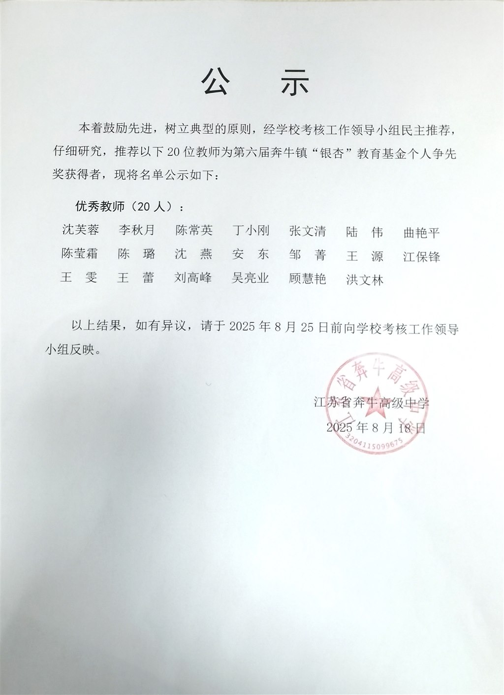 2024-2025学年度考核结果公示