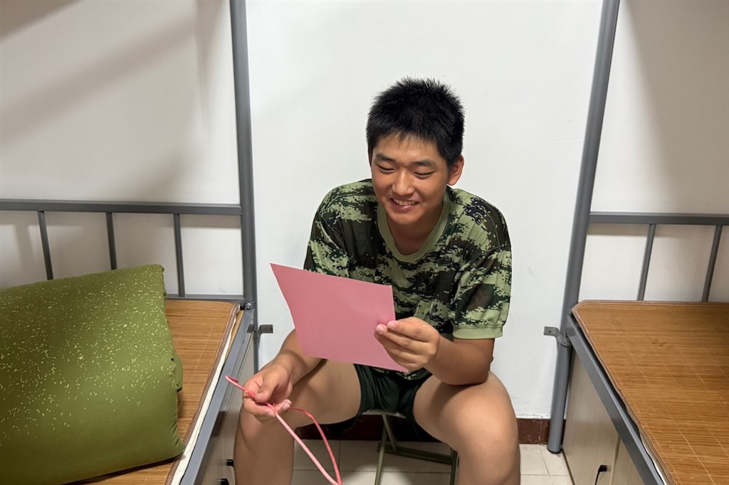 有人细细描述军训的收获,有人俏皮地写下"我已经能叠出标准的豆腐块",还有人悄悄画了个笑脸,在旁边写上"别担心,我变得更坚强了"。这些满载真情的信件将被仔细封存,在军训结束当天送到家长手中,成为这个夏天最珍贵的双向奔赴。