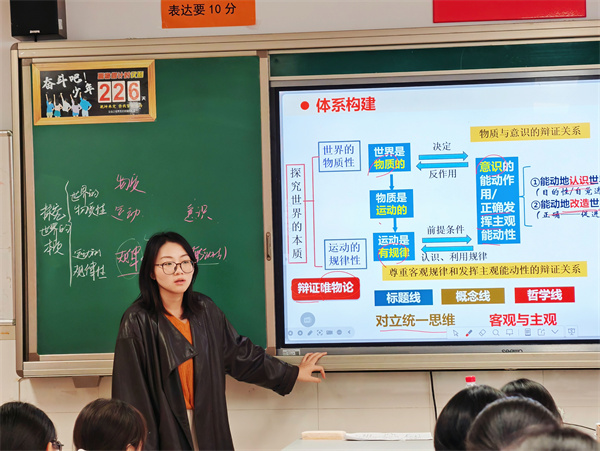 在本次“师徒同晒课”中,高三年级青年教师展现出扎实的教学功底与良好的课堂驾驭能力。他们在师傅的指导下,不仅准确把握复习重点,更在教学设计、课堂互动与板书呈现中体现出独特的教学思考,展现出较强的专业成长潜力,反映出学校“青蓝工程”在教师培养方面的显著成效。同时,“师徒同晒课”不仅是教学展示活动,更是经验传递与智慧共享的平台,师傅们倾囊相授,徒弟们积极吸纳,双方在“同课异构”中碰撞思维、互相启发,通过不同的教学路径达成共同的教学目标,真正实现了教学相长的良性循环。