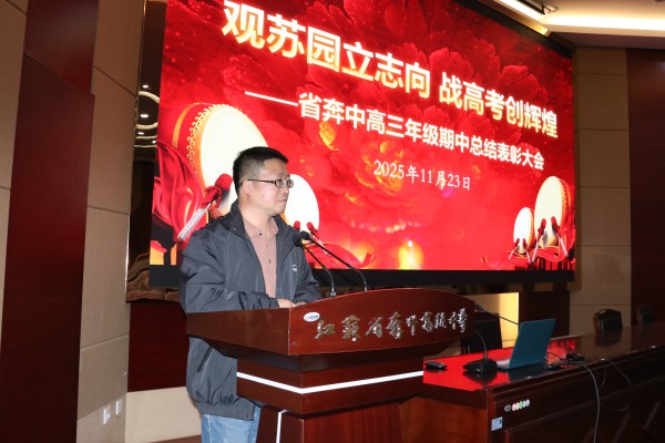 霜风渐紧,韶华正好。2025年11月23日,江苏省奔牛高级中学高三年级期中总结表彰大会于树人楼报告厅、丽江楼、活动中心学术报告厅三个会场同步启帷。这场以 “观苏园立志向 战高考创辉煌”为主题的盛会,分别由教师发展处主任张薇、课程教学处主任刘军彪、后勤服务处副主任李峰主持。