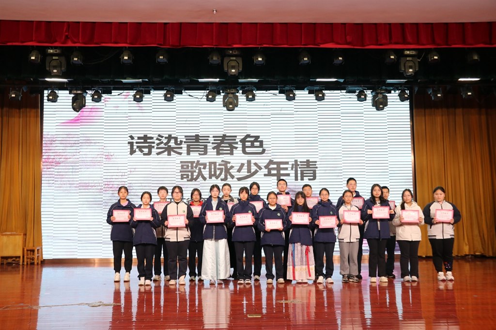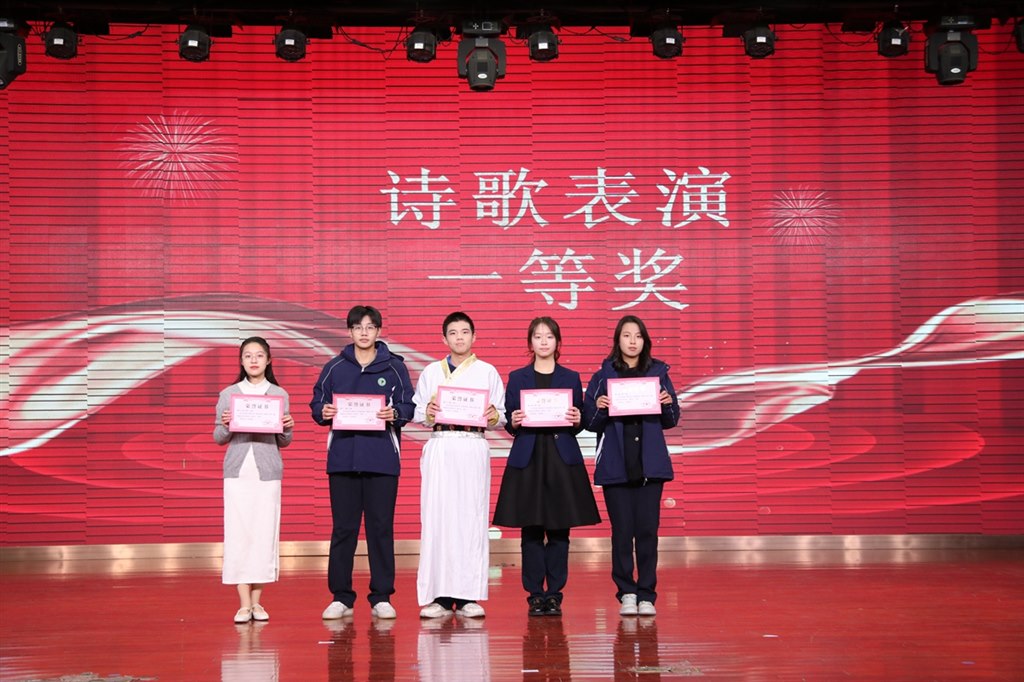 在精彩的诗歌创演环节结束后,现场迎来了激动人心的颁奖时刻。活动首先为在诗歌创作比赛中斩获特等奖、一等奖、二等奖的同学进行了表彰,以此鼓励在诗词创作领域的初露锋芒的同学。随后,为在本次诗歌创演活动中表现优异的班级颁发了奖项,表彰他们在节目编排与舞台呈现上的出色表现。台下的掌声与获奖者的笑容,为这场诗意盛会增添了更多喜悦与荣光。