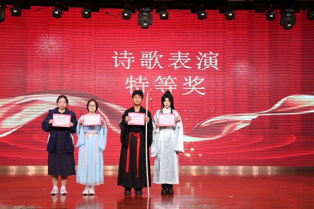 活动现场,表演形式丰富多样,诵、演、唱、奏巧妙融合,为在场师生带来了一场耳目一新的文化盛宴。舞台上的同学们全情投入,或慷慨激昂、或温婉细腻,用最真挚的情感传递着诗词的魅力,用最蓬勃的朝气展现着青春的风采,让古老的诗行与鲜活的青春碰撞出璀璨的火花。
