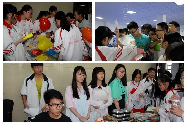 5月8日中午,省奔中团委和学生会生活部在翔远馆组织了热火朝天的义卖活动。体育馆内人流如潮,视野之中尽是沉浸于挑选义卖品、奉献爱心的同学以及家长们。在义卖品中,有生活部成员自己亲手做的水果沙拉;有学生和班主任老师一起悉心培植的小多肉植物;有同学珍藏多年的笔记、相册……;西藏同学则摆放了体现浓浓藏文化特色的书法和手工艺品。在全校同学的积极参与下此次活动共筹得义卖金9204.8元,这笔善款将用于成立“银杏青年基金”,以帮助(帮扶)孤寡老人、自闭症儿童、贫困学生等社会弱势群体。