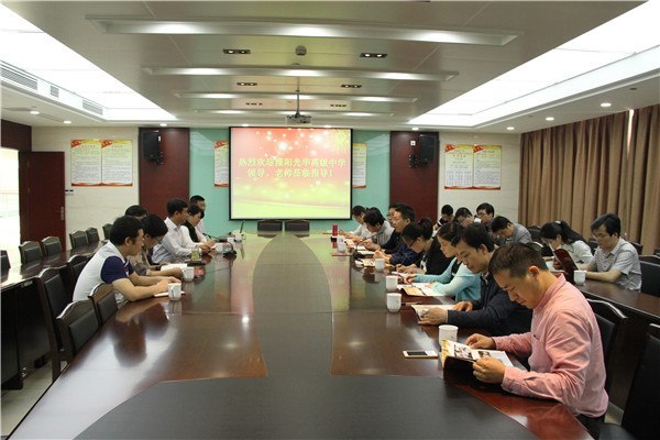 2016年5月12日上午,溧阳市光华高级中学校长刘志伟率德育考察团一行数人来到江苏省奔牛高级中学参观,并与省奔中校长王奕飞、副校长王锁良以及学生处全体成员进行了交流。