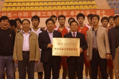 2010年11月6日下午,南京财经大学党委副书记、副校长王建明一行带领南财大的男子篮球队来到我校,举行了简单而隆重的挂牌仪式:我校成为南财大体育后备人才基地学校。挂牌仪式结束后,我校男子篮球队与南财大男子篮球队进行了一场友谊比赛。南财大球队精湛的球艺让我校男篮开了眼界,长了见识。谢校长对南财大球队来我校传授球艺表示热烈的欢迎和衷心的感谢。王建明副校长表示要把两校之间多年形成的传统友谊进行到底。他说这不仅仅体现在体育项目上,在其它领域也有着广阔的合作空间,比如可以派一些专家学者来我们学校讲学等等。