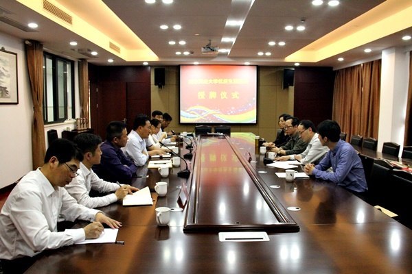南财大是江苏省的一所热门高校。近年来,该校为积极发挥高校学科与人才的优势,大力促进中学实施素质教育,本着“加强沟通、密切合作、共同培养、共同发展”的原则,积极寻求与各优质中学建立友好合作的长效机制,为选拔、输送优秀学生搭建平台。王奕飞校长对姚学峰部长一行来校签约、授牌表示欢迎和感谢,认为这是对省奔中教育教学工作的关心和支持。接着王校长从“深厚的办学底蕴”、“辉煌的办学业绩”、“一流的硬件设施”等三个方面向来宾介绍了省奔中办学概况,得到了来宾的高度赞扬。