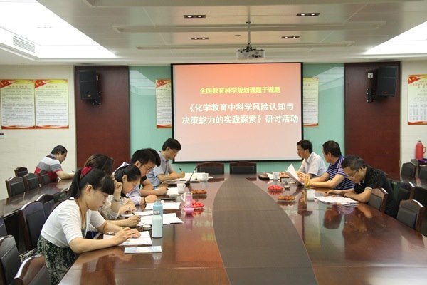 2016年6月16日,全国教育科学规划课题子课题《化学教学中科学风险认知与决策能力的实践探索》研讨活动在省奔中四楼教工之家举行。市教科院化学教研员吴永才老师、省奔中化学学科部陈伟老师及来自全市各校的课题组成员参加了研讨活动。