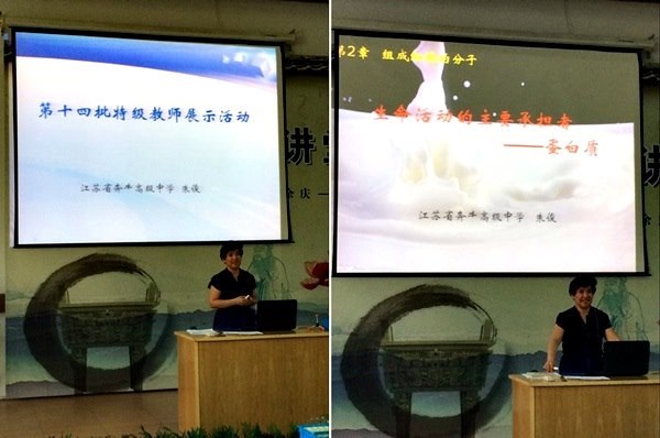 活动首先由朱俊老师向老师们展示了一节高一的新授课《生命活动的物质承担者——蛋白质》。该堂课从贴近生活的微信朋友圈的减肥食谱入手,不但引导学生认识到蛋白质作为营养元素的重要性,而且启发学生健康生活,要科学、理性对待各种信息。接着,朱俊老师将微视频、实验探究、三维模型和磁片模型等丰富的教学方法和手段与教学内容有机结合,深入浅出、循序渐进,在传授知识的同时,使同学们的综合能力得到了锻炼与提升。本节课,朱老师向老师们成功地示范了教学中如何关注学科的核心素养,培养学生积极的情感态度价值观和高度的社会责任感,做到爱自己,爱他人,将来走上社会要遵守社会道德,更要承担社会责任。朱俊老师将课程主题思想层层升华,引起了在座学生和全体老师强烈的情感共鸣,课程结束时赢得了一片热烈的掌声。