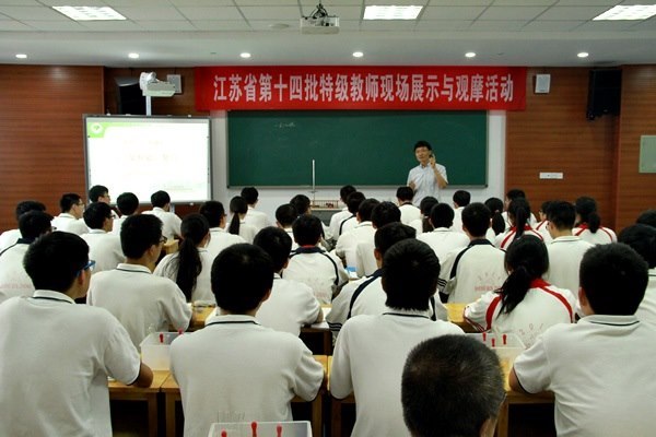 为充分发挥特级教师的引领、示范、辐射、带动作用,9月13日下午,江苏省第十四批特级教师、省奔中教科室陈伟主任在省奔中举行了现场展示活动。常州市教教育丁伟明局长、常仁飞副局长、基教处戚宝华处长、人事处黄屹处长、黄诚副处长、张小亚副处长和常州市教师发展中心、新北区教育文体局等领导以及常州市100多名化学教师参加了本次活动。