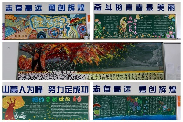 黑板报最好地展示着班级文化,彰显着学生的才艺。在省奔中第十一届“相约金秋 绽放青春”校园文化艺术节中,黑板报评比活动也如火如荼的进行着,绽放青春的热情同样在这个金秋时节洋溢在每一个教室的黑板上。学生们利用休息时间几个人合作,在教室的黑板上大展手艺,有的设计总体框架,有的负责内容书写,有的负责画画板块,还时不时看到有学生在黑板周围拿粉笔,递颜料,在黑板的周围凝聚着同学们互相帮助,团结一心为班级争荣誉的积极性。让大家在感慨才艺出众的同时被他们团结协作的同学情所感染。