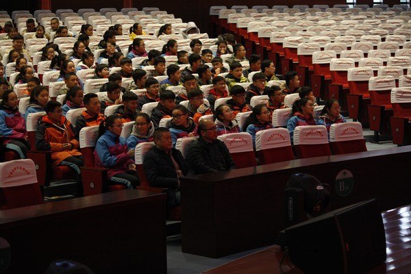 常藏的近160师生分成两组参观了省奔中校园,省奔中美丽的校园环境,现代化的设施设备给常藏师生留下了深刻的印象。9点50分,来访的客人齐聚丽江楼报告厅,黄伟文副校长代表学校作了热情洋溢的讲话,欢迎常州西藏民族中学的领导、、老师、同学来校活动并祝愿大家在省奔中度过愉快的一天。