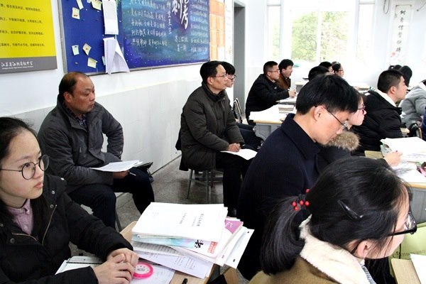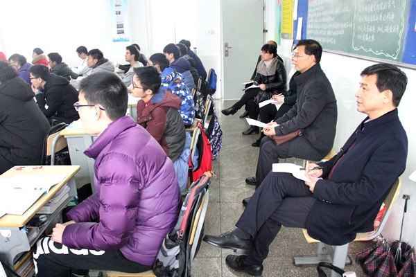 我们先深入班级观摩了务实、高效的高三复习课。江阴高中高三课堂轻松的教学氛围、高三学生昂扬向上的精神状态给我们留下了深刻的印象。听课之后,郁洪千校长向我们介绍了江阴高中近几年的办学情况和“将时间还给学生,让学生自主成长”的办学理念。然后江阴高中各年级的年级部主任分别和我们各年级管理小组成员就年级教育教学管理的具体做法进行了深入的交流和探讨,大家受益匪浅。