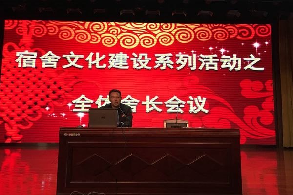 为了进一步加强宿舍管理和提升宿舍文化氛围,并以建设优良学风为核心,以优化宿舍环境为重点,以树立正确的世界观、人生观、价值观为导向,弘扬主旋律,突出高品位,努力建设体现学生积极向上的精神风貌,体现人文关怀的宿舍文化,不断满足学生日益增长的精神文化需求,为学生成人成材提供强大的精神动力。舍务处于2017年11月1日中午12点在丽江楼召开宿舍文化建设系列活动之全体宿舍长会议。会议首先由总务处副主任马杰老师利用一组数据分析了2017届高考成绩与宿舍管理的重要关系。随后学生处主任陆金老师用生动的例子和亲身的经历阐明了宿舍管理和宿舍氛围对未来人生产生的重大影响力,并对宿舍文化建设和管理提出了建设性的意见和建议。